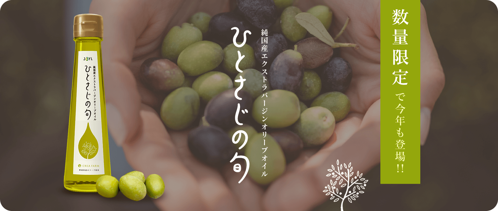 純国産エクストラバージンオリーブオイル 「JOYL ひとさじの旬 CREA FARM」 アルベキーナ種 92g瓶