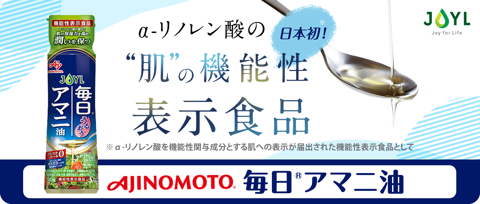 α-リノレン酸の働きで肌の保湿力を高め、潤いを保つ 「AJINOMOTO 毎日アマニ油」 90g鮮度キープボトル