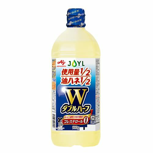 「AJINOMOTO ダブルハーフ」は、使用量が通常の2分の1で調理でき、油ハネが少ないコレステロール0 ( ゼロ ) のキャノーラ油です。通常の油に比べて衣の中の水分が早く抜け、1/2の油でカラッとおいしく揚がります。また、水となじみやすい油のため、油の中に分散する水滴が小さくなり、調理中の油ハネも通常の半分の量に抑えられます。使用量と油ハネを抑えることにより半分の量で、揚げもの、炒めものがあっさり仕上がります。油ハネが50%に減るので、後片付けがラクラク。(※当社キャノーラ油同容量帯と比較)手軽に使える600gサイズもあります。