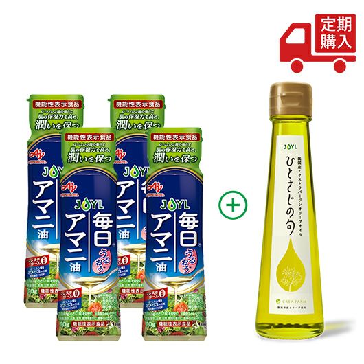 定期便でお得!ずっと10%OFF 【定期】「AJINOMOTO 毎日アマニ油」 90g鮮度キープボトル×4本+「AJINOMOTO オリーブオイルエクストラバージン」 500gスマートグリーンパック1本