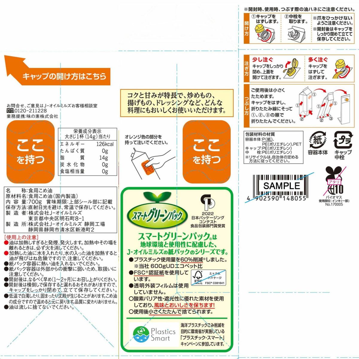 他の画像を見る こめ油がたっぷり入った、料理がおいしく仕上がる油です。 「AJINOMOTO こめ油たっぷりクッキングオイル」 500gスマートグリーンパック 価格 ¥ 590 税込 カートに入れる お気に入りに登録する