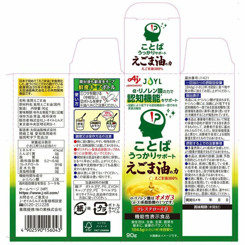 他の画像を見る α-リノレン酸の力で認知機能をサポート。 「AJINOMOTO ことばうっかりサポート えごま油の力」 90g鮮度キープボトル 価格 ¥ 890 税込 カートに入れる お気に入りに登録する