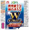 「AJINOMOTO ダブルハーフ」は、使用量が通常の2分の1で調理でき、油ハネが少ないコレステロール0 ( ゼロ ) のキャノーラ油です。通常の油に比べて衣の中の水分が早く抜け、1/2の油でカラッとおいしく揚がります。また、水となじみやすい油のため、油の中に分散する水滴が小さくなり、調理中の油ハネも通常の半分の量に抑えられます。使用量と油ハネを抑えることにより半分の量で、揚げもの、炒めものがあっさり仕上がります。油ハネが50%に減るので、後片付けがラクラク。(※当社キャノーラ油同容量帯と比較)手軽に使える600gサイズもあります。