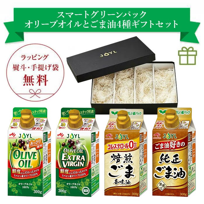 人にも地球にもやさしいギフトセット スマートグリーンパック オリーブオイルとごま油4種ギフトセット