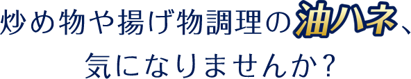 水分ともなじみやすい油のため、油の中に分散する水滴が小さくなり、調理中の油ハネも1/2に抑えられます※2。 炒めもの、揚げものなどの油を使った調理後の掃除が簡単で、後片付けも楽になります。※2 当社従来品との比較