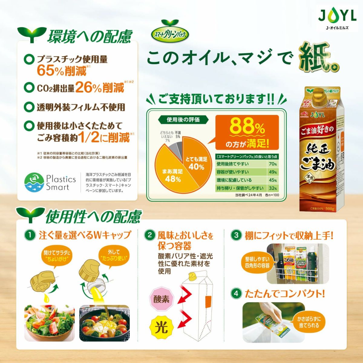 他の画像を見る 深煎りごまの濃厚な香りとコクの純正ごま油 「AJINOMOTO ごま油好きの純正ごま油」 500gスマートグリーンパック 価格 ¥ 1,090 税込 カートに入れる お気に入りに登録する