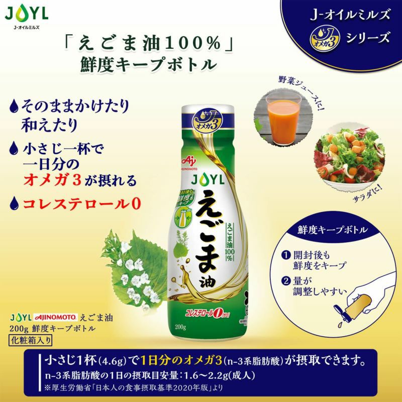 他の画像を見る まとめ買いでお得!8本で15%OFF 【まとめ】「AJINOMOTO えごま油」 200g鮮度キープボトル×8本 通常価格 ¥ 10,784 のところ 価格 ¥ 9,166 税込 カートに入れる お気に入りに登録する